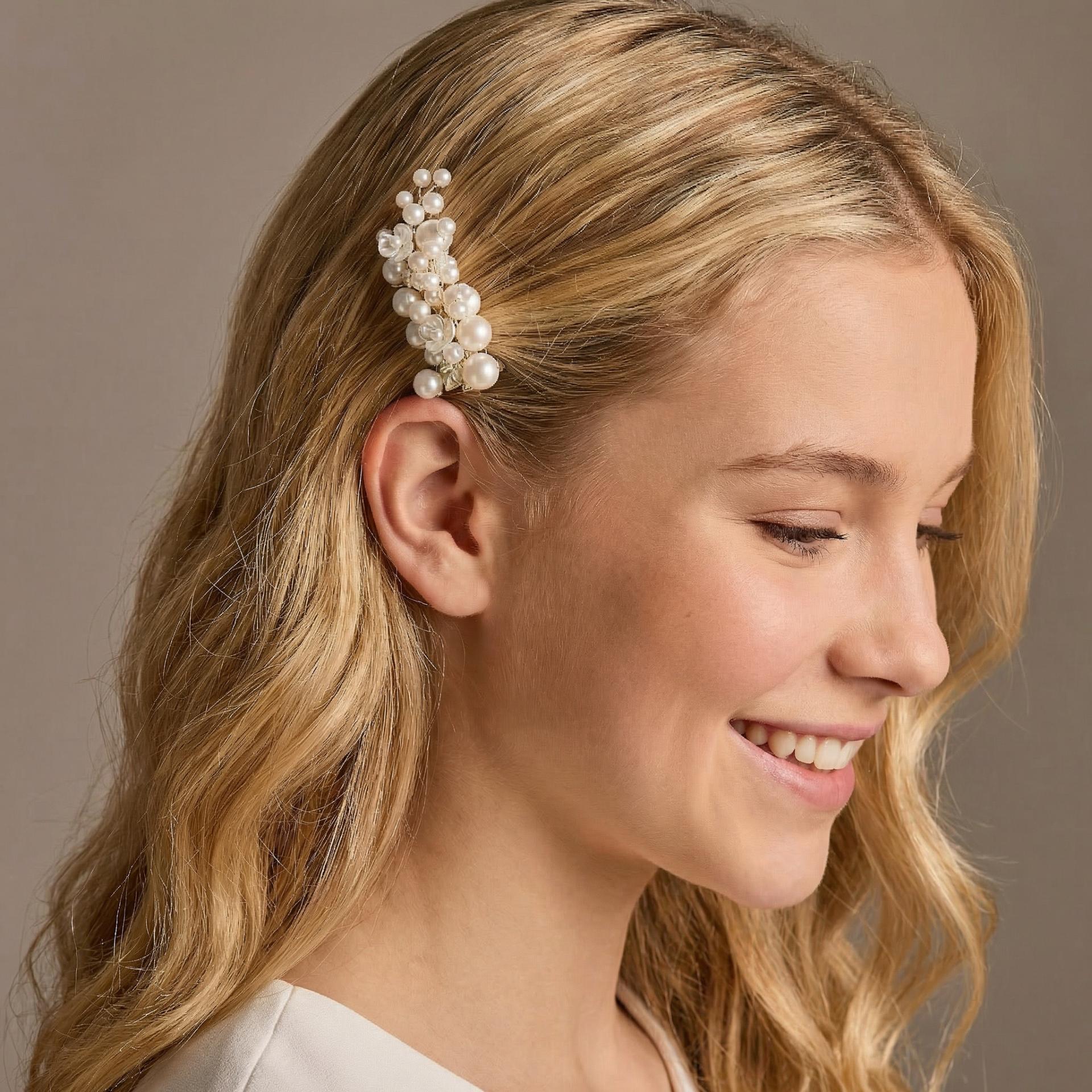 Uanset hvilken frisure du vælger, kan det rigtige hårpynt løfte hele dit konfirmationslook. Perler, glimmer og feminine detaljer passer perfekt til konfirmation og giver frisuren et smukt, festligt finish.