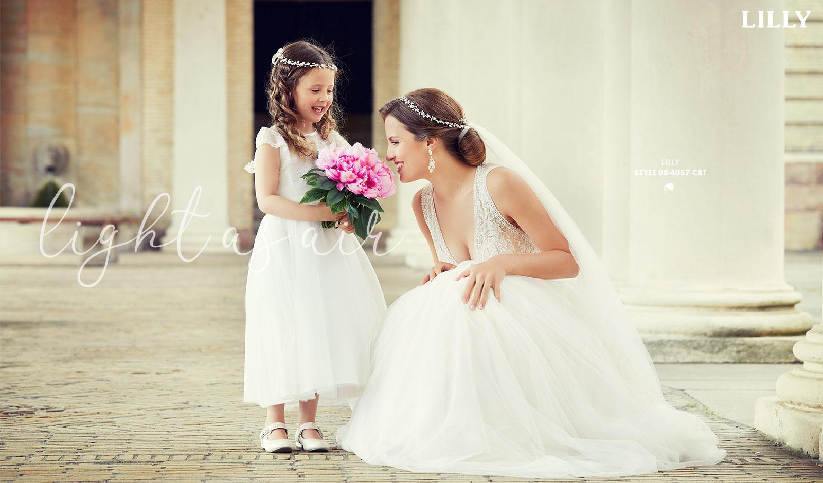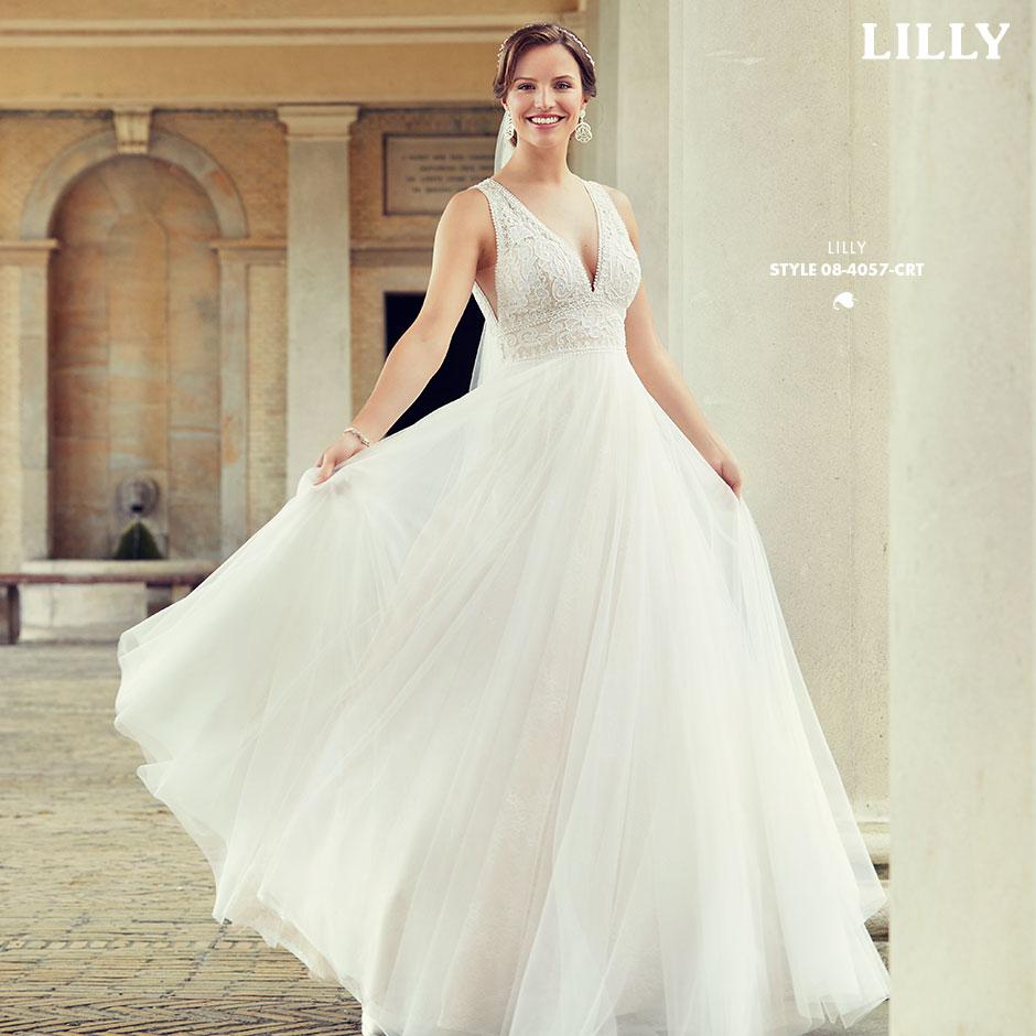 Svævende bryllupsrober, der fascinerer med bløde silhuetter, i et miks af douchede nuancer, der fremhæver romantiske blonder og gennemsigtige detaljer. V-udskæringen er et MUST HAVE i dette look og dybe ryg udskæringer drager fokus til sig.