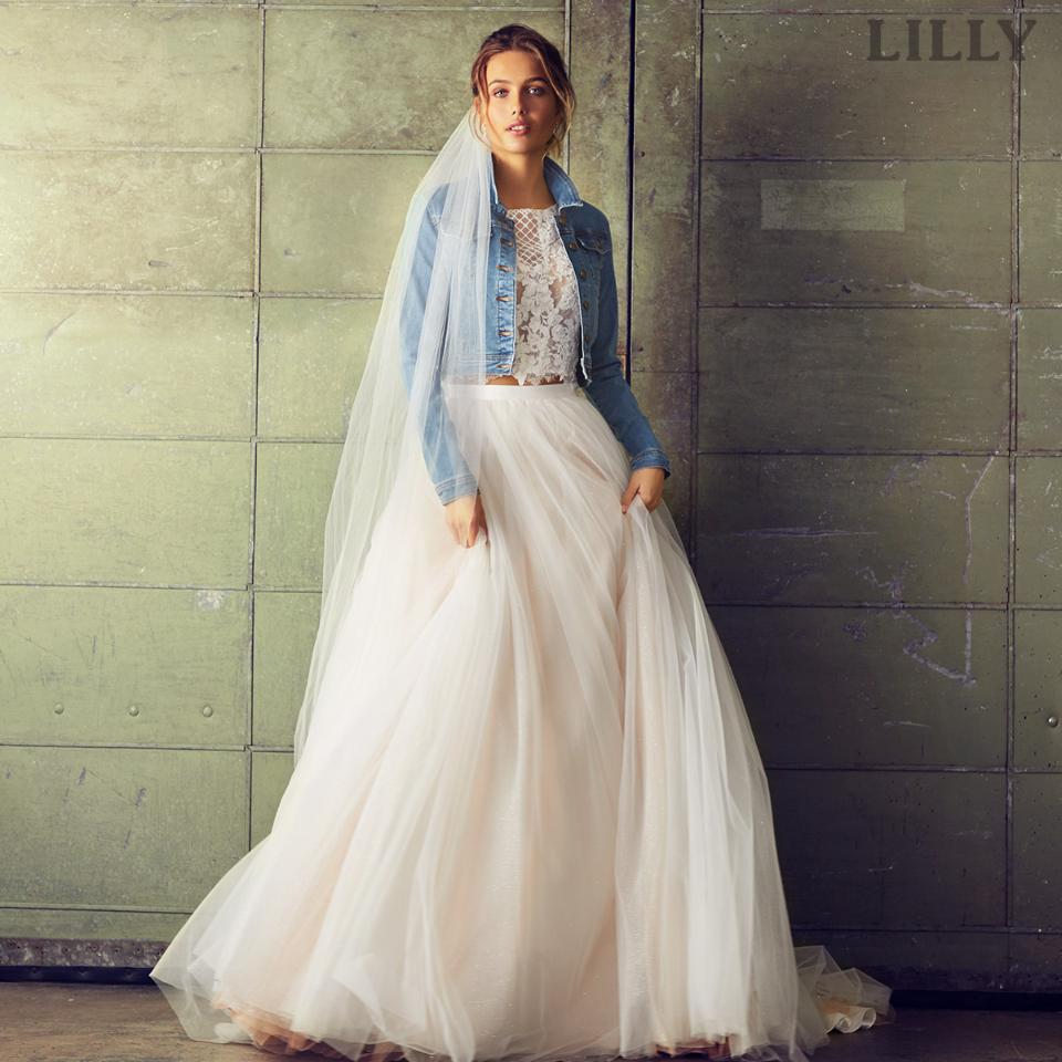 De drager alle blikke og er tidens hotteste trend i bryllupsmoden: de to-delte brudekjoler! Her kombineres smukke blonde toppe med luftige tyls eller organza nederdele i forskellige længder og snit. Mix og match taljebånd og jakker til din kombi, for at give dit look endnu mere personlighed - fra cool til klassisk, fra glimmer til enkelt.